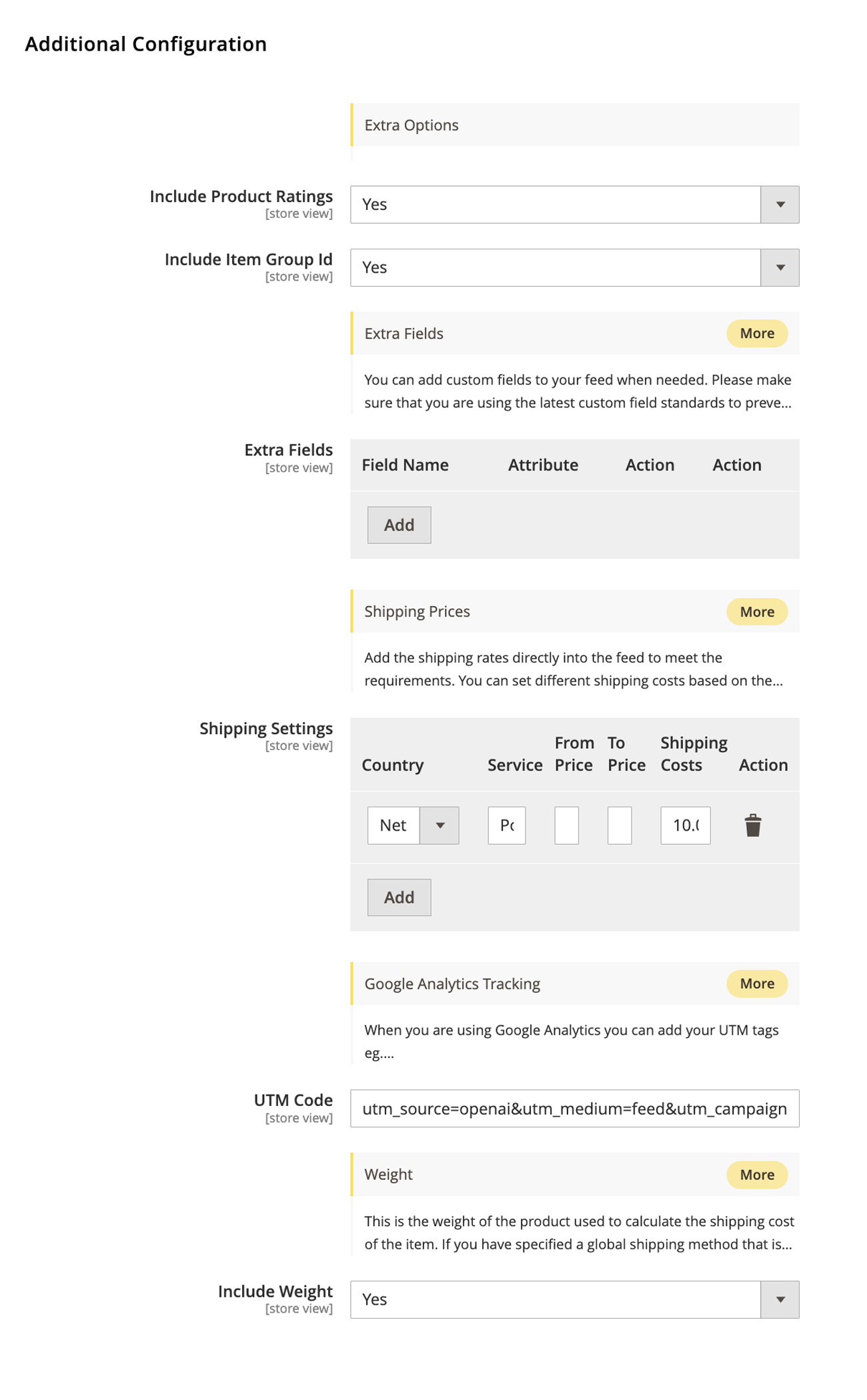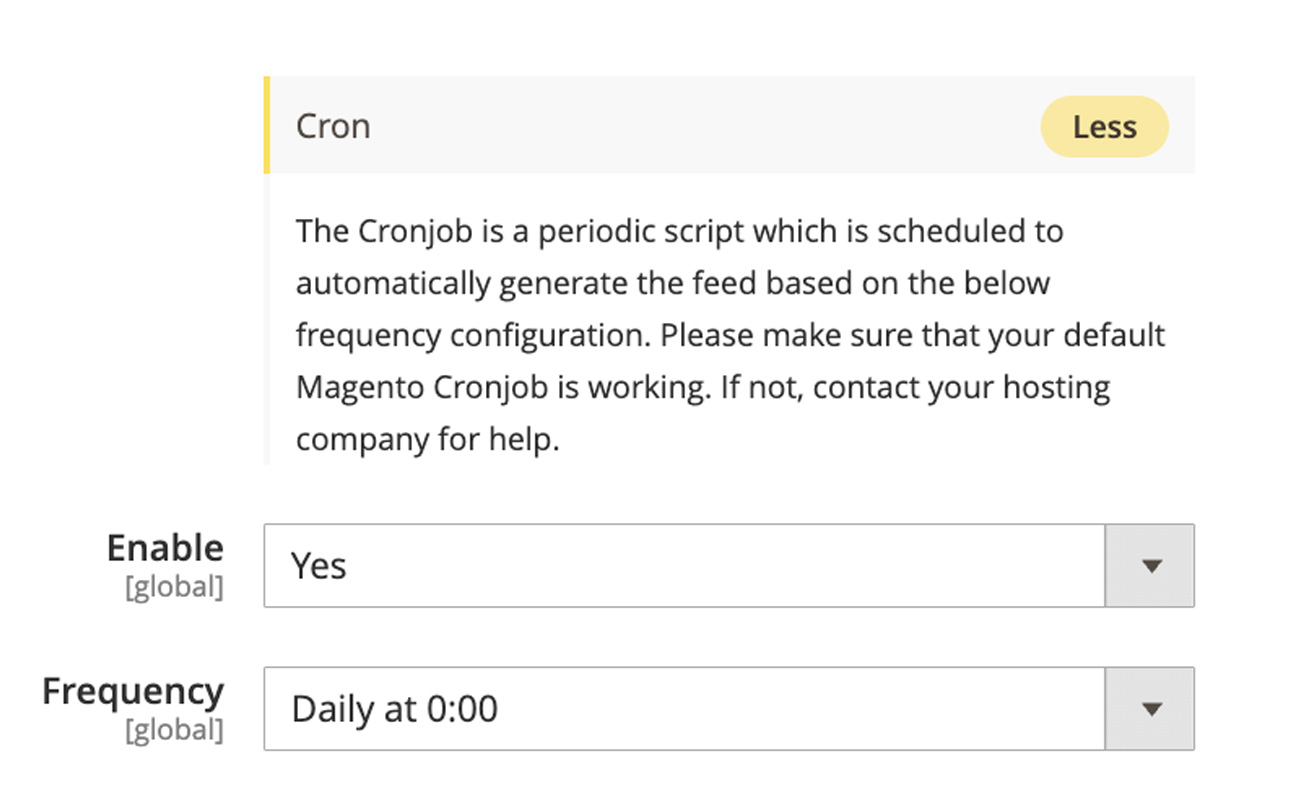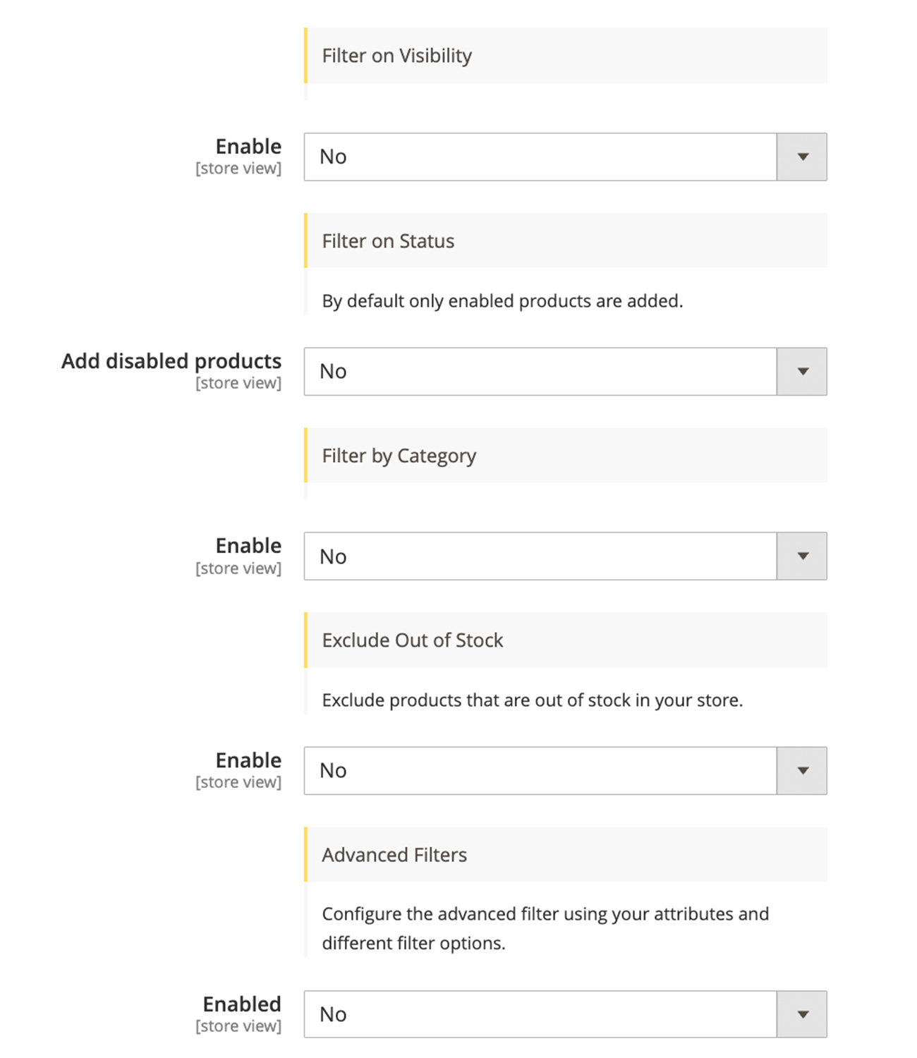 - Ja/Nee: Schakel de feedgeneratie in of uit voor de geselecteerde Store View.