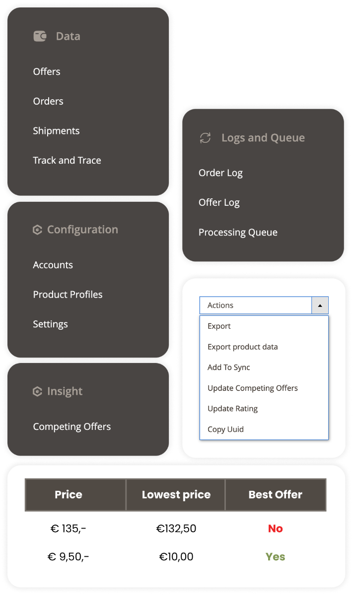 Beheer eenvoudig aanbiedingsprofielen, orderworkflows en datasynchronisatie direct vanuit Magento. Blijf in controle met gedetailleerde logs en monitoringtools om elke update in realtime te volgen.