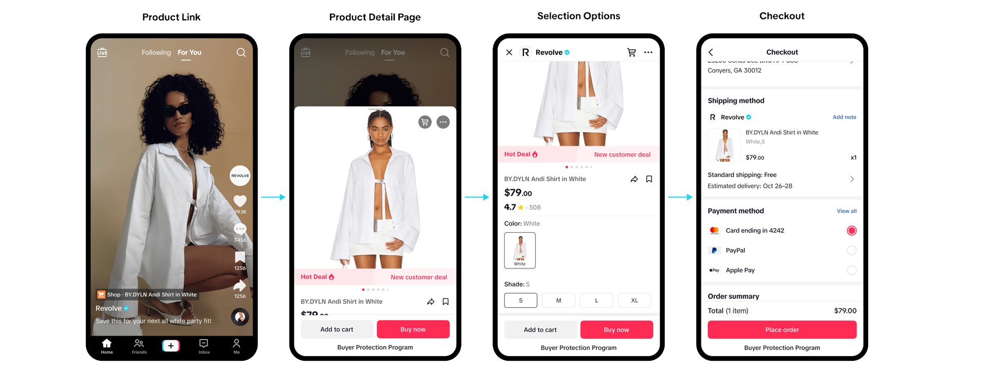 Bied een volledig geïntegreerde TikTok-winkelervaring zonder aparte webshops te beheren — klanten kunnen eenvoudig bladeren, kopen en hun bestelling volgen.