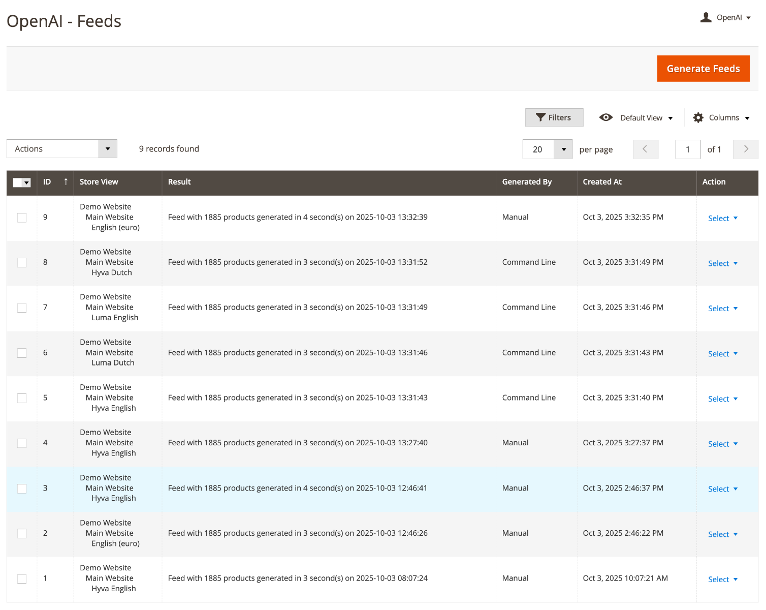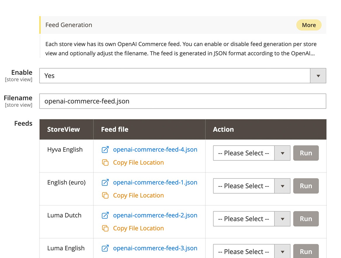 De OpenAI Product Feed-extensie maakt het ongelooflijk eenvoudig om een schone en gestructureerde productfeed direct vanuit je Magento 2-winkel te genereren. Met slechts een paar klikken wordt je productcatalogus omgezet in een AI-geoptimaliseerde feed — klaar om ontdekt te worden via de winkelervaring van ChatGPT.