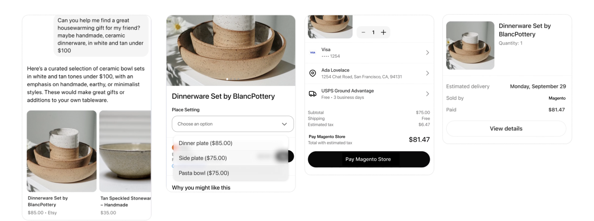 Bestellingen die in ChatGPT geplaatst worden, stromen terug naar Magento voor verwerking, net als elke andere bestelling. - Klantbeleving